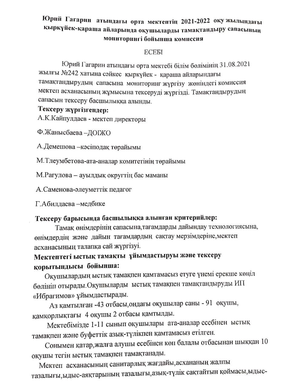 Брокераждық комиссиясының мониторингі » сш.им.Гагарина