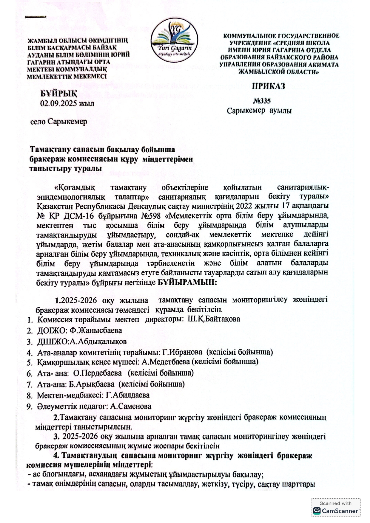 02 сентябрь 2025 0 1 2 3 4 5 Тамақтану сапасын бақылау бойынша бракераж коммисиясын құру міндеттерімен таныстыру туралы